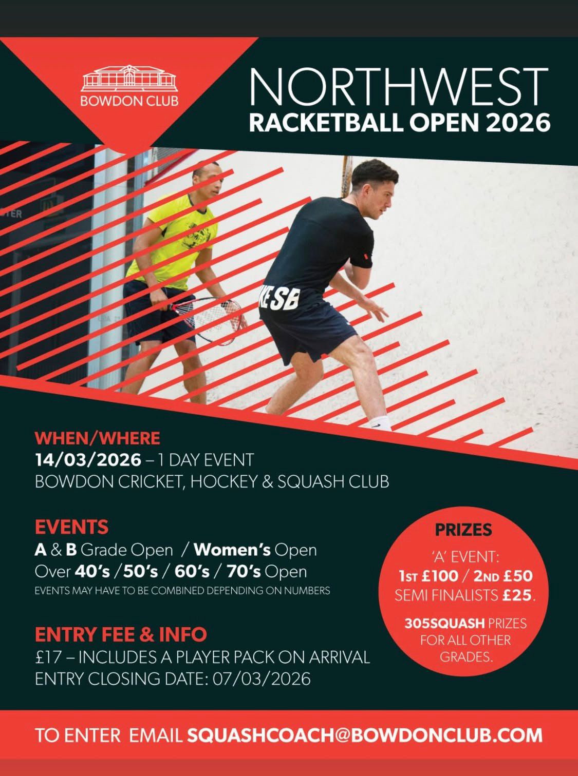The 2025 Club Championships are well underway in Squash and Racketball events (Ladies, Mens and Juniors) but please note, there is no Plate Competition.