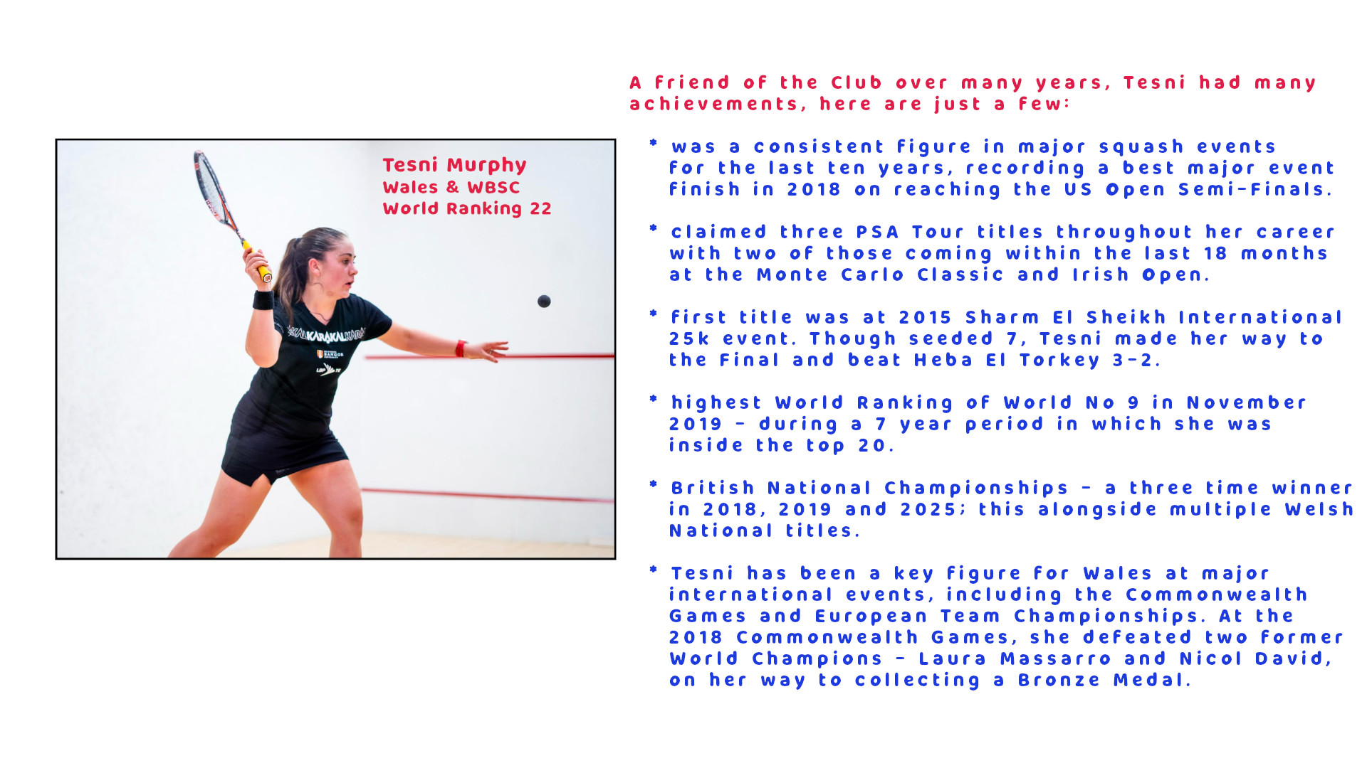 JD has had a great few months, having taken both the British Closed and Open events in Racketball, and now the Welsh Squash Title - an amazing achievement, congratulations.
