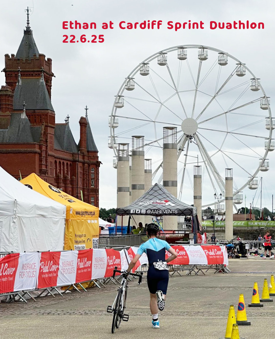Well done to Ethan Willis on tackling the Cardiff Sprint Ducathlon on 22 June. Off the bike Ducathlon Finisher