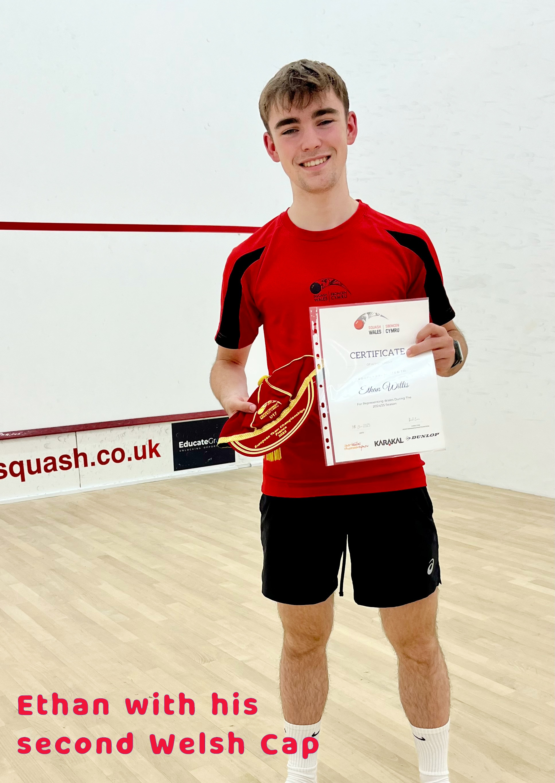 One of our Club members, Ethan Willis, has had the huge honour of being made Captain of the Welsh Juniors Under 17s Team by Squash Wales. In the beginning ! Ethan - Welsh Champion