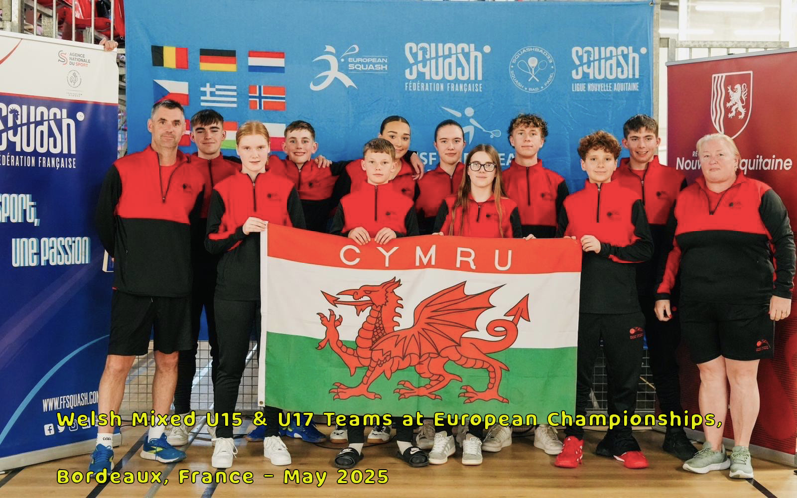 Members of the SW Academy North Squad travelled to Bordeaux, France as part of an Under 15s and Under 17s Mixed Teams, in the 2025 European Squash Championships. Welsh Mixed U15 & U17 Teams in Bordeaux